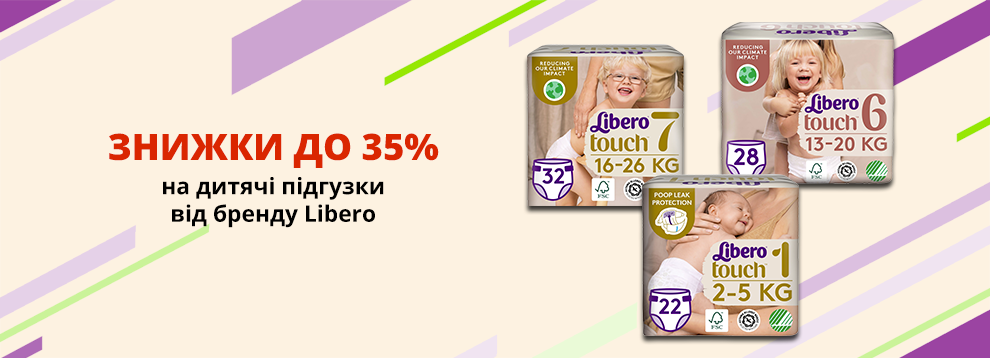 Знижки до -35% на дитячі підгузки від бренду Libero