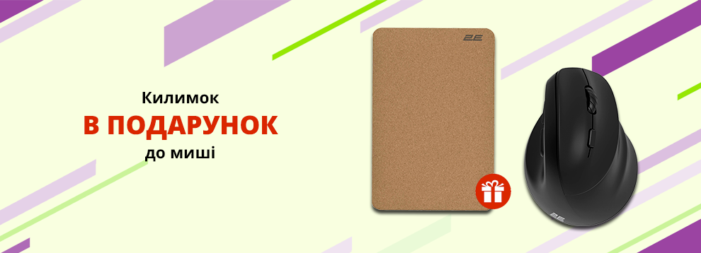 - Купуй акційну мишу 2Е та отримуй Килимок для миші 2E CORK, S (300x200x2мм), коричневий у подарунок *Акція діє при покупці готівкою або кредитною карткою. Ціни вказані у гривнях, кількість товару обмежена. Ціни та умови пропозиції можуть бути змінені протягом дії акції. Зображення товару на фото може відрізнятися від фактичного. Доступно в кредит, розстрочку чи оплату частинами. Акція підсумовується з іншими пропозиціями.