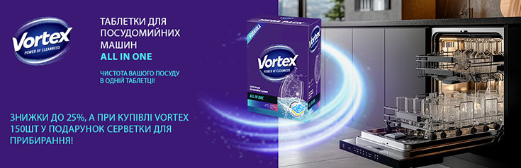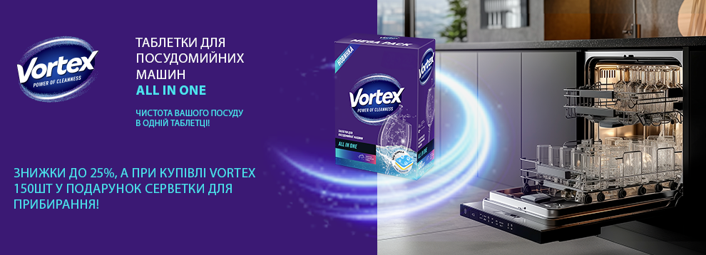 Знижки до -25% на таблетки для посудомийної машини Vortex