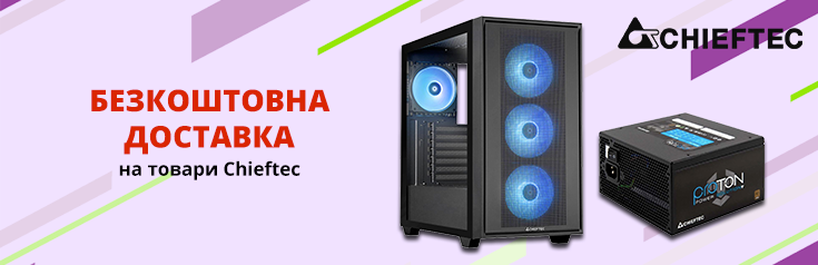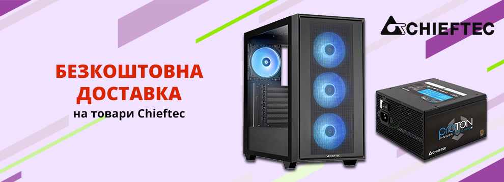 - Купуй нові акційні товари Chieftec та отримай безкоштовну доставку *Акція діє при покупці за готівку або кредитною карткою. Ціни вказані у гривнях, кількість товару обмежена. Ціни та умови пропозиції можуть бути змінені протягом дії акції. Зображення товару на зображенні може відрізнятися від фактичного. Доступно в кредит, розстрочку чи оплату частинами. Акція підсумовується з іншими пропозиціями.