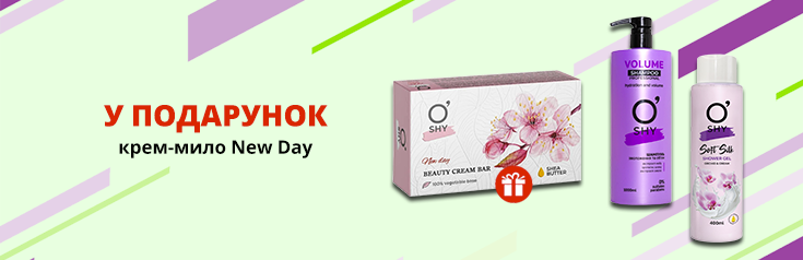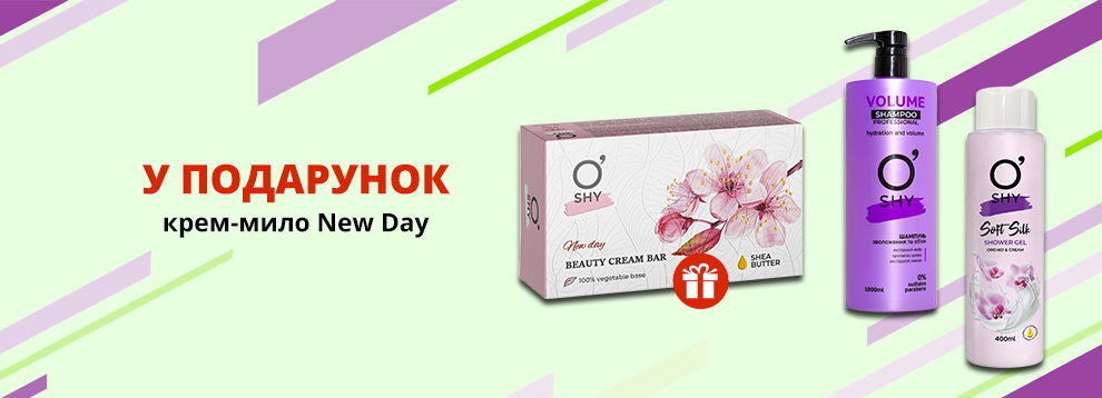 За покупку продукції ТМ O’Shy від 200грн отримуй у подарунок крем-мило New Day
