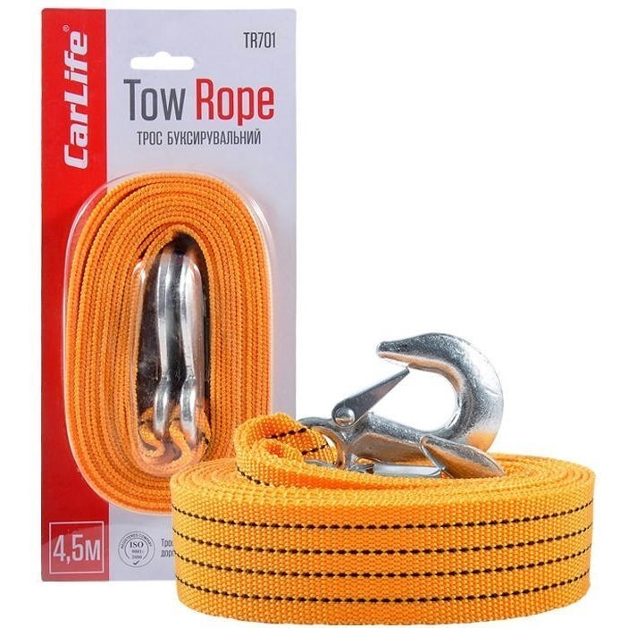 Трос буксирувальний CarLife - це доступний вибір відмінної якості, який допоможе вам у важку хвилину. Призначений для буксирування вантажів з вагою до 3 тонн. Буксирувальний трос являє собою міцну стрічку завдовжки 4,5 метрів і завширшки 4,5 см з двома гаками на краях, для забезпечення простої та надійної фіксації. Стрічка виконана з міцного матеріалу легкого у догляді та зберіганні.
