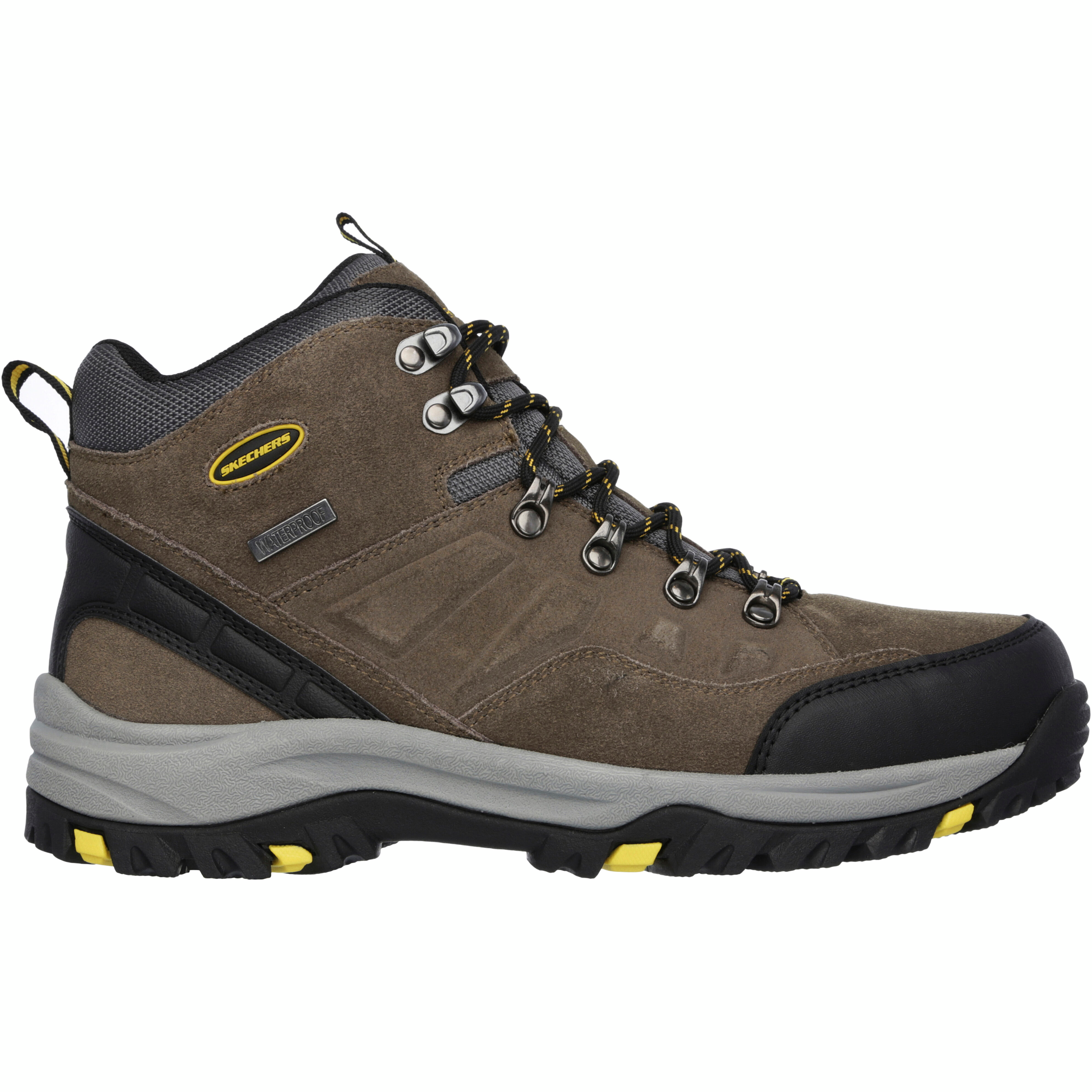 Продолжайте двигаться в любых условиях с комфортом и прочным стилем в Skechers Relaxed Fit: Relment - Pelmo. Эти туристические ботинки на шнуровке имеют водонепроницаемый верх из замши, синтетики и сетки с мягкой стелькой Skechers Memory Foam с воздушным охлаждением.