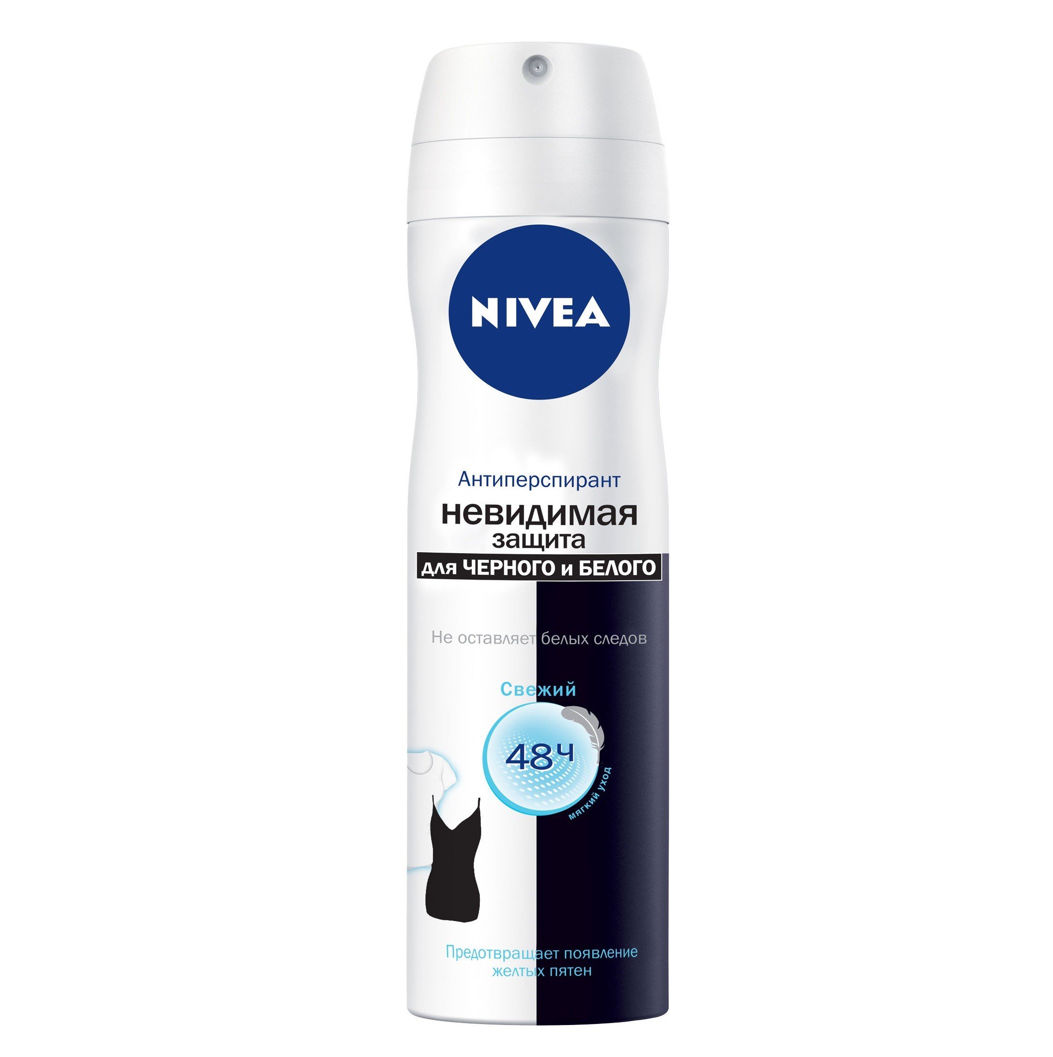 Дезодорант-антиперспирант НЕВИДИМАЯ ЗАЩИТА ДЛЯ ЧЕРНОГО И БЕЛОГО от NIVEA не оставляет белых следов на черной одежде, предотвращает появление желтых пятен на белой. Надежно защищает Вас и Вашу одежду в течение 48 часов.