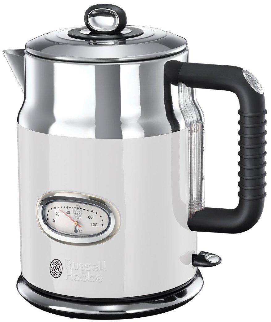 Уникальность этой модели чайника придает стильный винтажный термометр, который отображает текущую температуру воды. Вы сможете сами контролировать готовность воды для разных напитков, ведь для зеленого, белого, черного чая или для кофе требуются различные температуры воды. Это также удобно для быстрого подогрева воды до температуры, комфортной для питья. Пластиковые детали чайника без содержания BPA, безопасны для вашего здоровья.