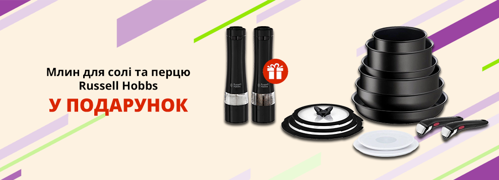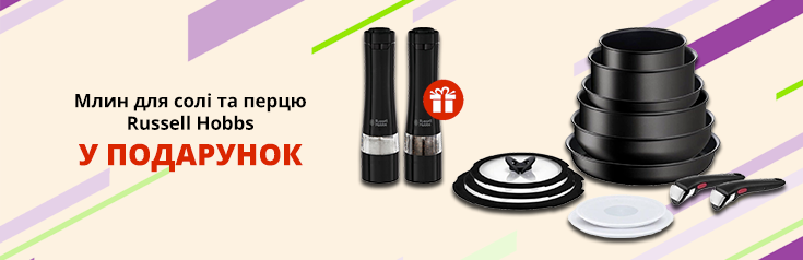 Купуй Набір посуду або Набір ножів та отримуй Млин для солі та перцю Russell Hobbs у подарунок