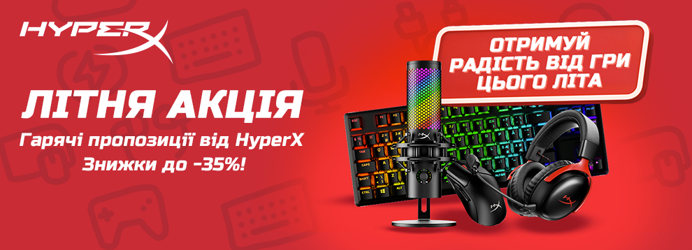 Літо для перемог з HyperX! Гарячі знижки до -35% на акційні товари. Купуй зараз та грай на повну!
