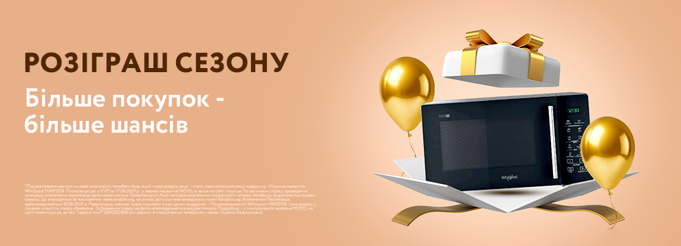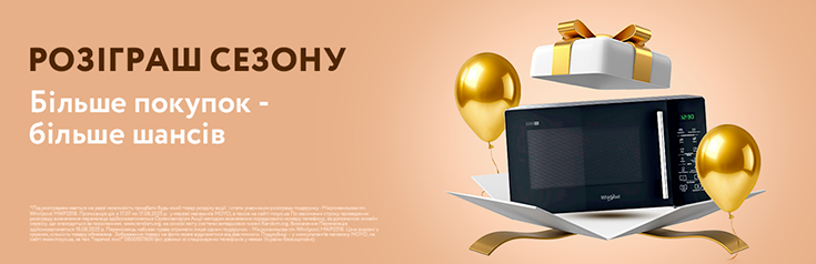 - *Під розіграшем мається на увазі можливість придбати будь-який товар розділу акції та стати учасником розіграшу подарунку - Мікрохвильова піч Whirlpool MWP251B. По закінченні строку проведення розіграшу визначення переможця здійснюватиметься Організатором Акції методом визначення порядкового номеру телефону, за допомогою онлайн сервісу, що знаходиться за посиланням: www.random.org. на основі звіту системи випадкових чисел Random.org. Визначення Переможців здійснюватиметься 18.08.2025 р. Переможець набуває права отримати лише один подарунок - Мікрохвильова піч Whirlpool MWP251B. Ціни вказані у гривнях, кількість товару обмежена. Зображення товару на фото може відрізнятися від фактичного.