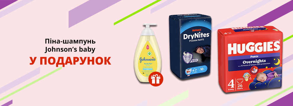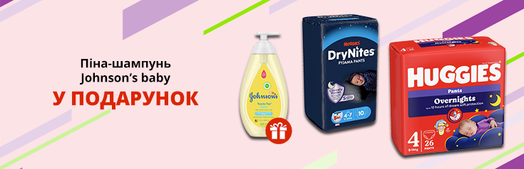 Купуй обрані підгузки Huggies та отримуй у подарунок Піну-шампунь Johnson’s baby
