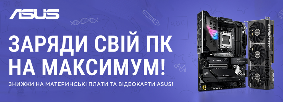 - Купуй нові акційні товари ASUS та отримай знижку до 15%. *Акція діє при покупці за готівку або кредитною карткою. Ціни вказані у гривнях, кількість товару обмежена. Ціни та умови пропозиції можуть бути змінені протягом дії акції. Зображення товару на зображенні може відрізнятися від фактичного. Доступно в кредит, розстрочку чи оплату частинами. Акція підсумовується з іншими пропозиціями.