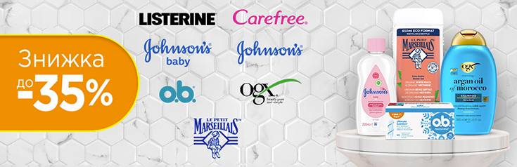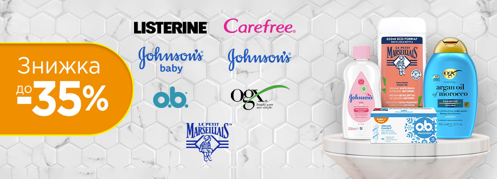 Знижки до -35% на товари JOHNSON'S, Le Petit Marseillais, LISTERINE, Carefree, o.b.