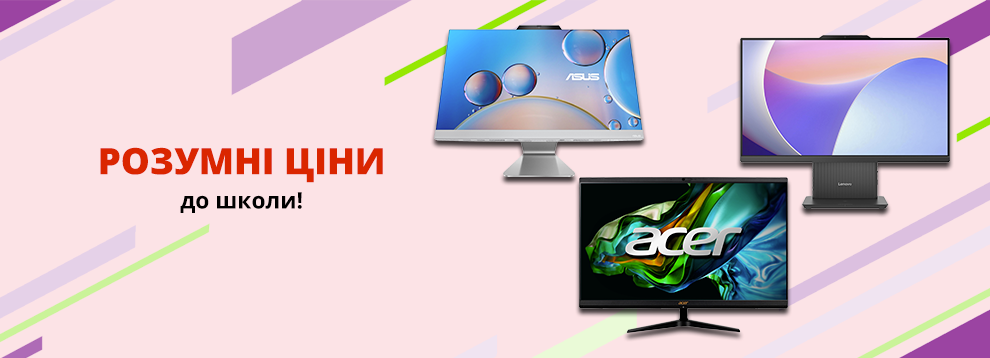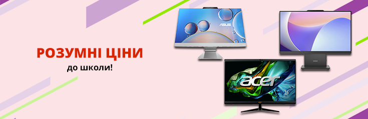 - Готуйся до нового навчального року з максимальною вигодою! Обирай сучасні моноблоки за акційними цінами та отримуй більше продуктивності для навчання й роботи. *Ціни та умови пропозиції можуть бути змінені протягом дії акції. Зображення товару на фото може відрізнятися від фактичного. Акційна пропозиція дійсна на території України за винятком тимчасово окупованих територій та територій населених пунктів, що розташовані в зоні бойових дій та на лінії зіткнення.