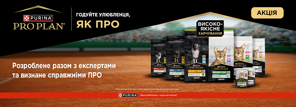 - Акційна ціна сухий та вологий корм для котів та собак ТМ Pro Plan! *Акція діє при покупці за готівку або кредитною карткою. Ціни вказані у гривнях, кількість товару обмежена. Ціни та умови пропозиції можуть бути змінені протягом дії акції. Зображення товару на картинці (фото) може відрізнятися від фактичного. Не доступно в кредит, розстрочку чи оплату частинами. Акція не підсумовується з іншими пропозиціями.