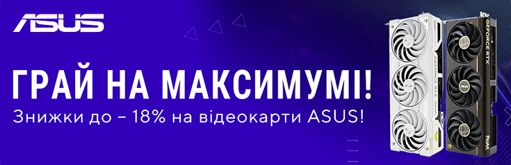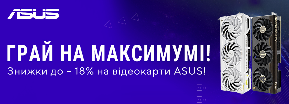- Онови графіку свого ПК! Відеокарти ASUS зі знижками до -18% — потужність і стиль за вигідною ціною. *Акція діє при покупці готівкою або кредитною карткою. Ціни вказані у гривнях, кількість товару обмежена. Ціни та умови пропозиції можуть бути змінені протягом дії акції. Зображення товару на фото може відрізнятися від фактичного. Доступно в кредит, розстрочку чи оплату частинами. Акція підсумовується з іншими пропозиціями. Акційна пропозиція дійсна на території України, за винятком тимчасово окупованих територій та територій населених пунктів, що розташовані в зоні бойових дій та на лінії зіткнення.