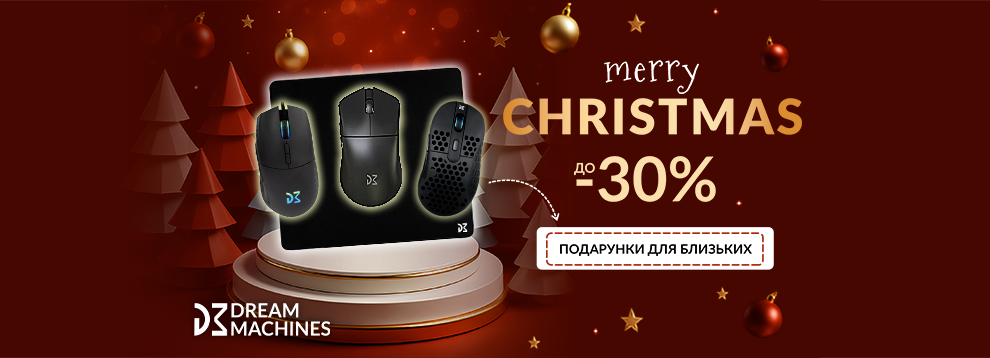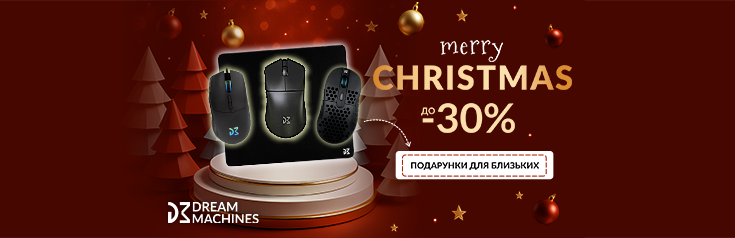 - Пориньте у різдвяну магію разом із Dream Machines! Ловіть знижки до -30% на топову периферію та оновлюйте свій сетап для максимально комфортної та захопливішої гри! *Акція діє при покупці готівкою або кредитною карткою. Ціни вказані у гривнях, кількість товару обмежена. Ціни та умови пропозиції можуть бути змінені протягом дії акції. Зображення товару на фото може відрізнятися від фактичного. Доступно в кредит, розстрочку чи оплату частинами. Акція підсумовується з іншими пропозиціями. Акційна пропозиція дійсна на території України, за винятком тимчасово окупованих територій та територій населених пунктів, що розташовані в зоні бойових дій та на лінії зіткнення.