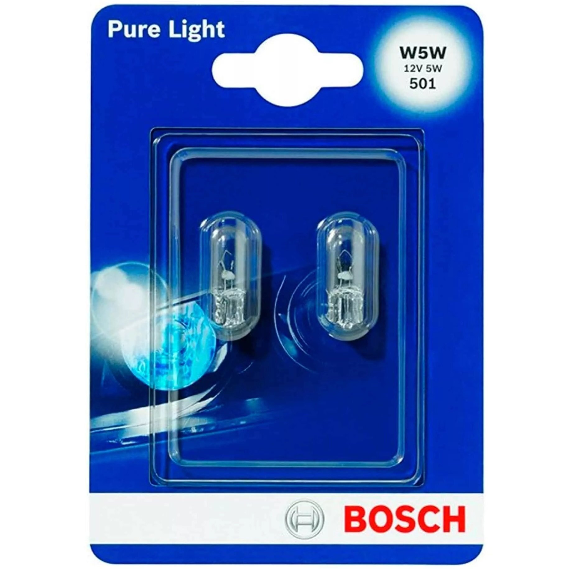 Лампа Bosch розжарювання 12V W5W W2,1x9.5D Pure Light (2шт) (BO_1987301026)