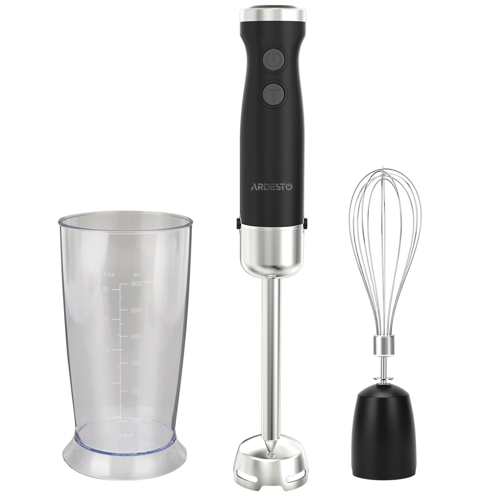 Эргономичный ручной блендер ARDESTO HBG-600BWH погружного типа мощностью 600 Вт пригодится при приготовлении соусов, супов, майонезов, детского питания и молочных коктейлей. В комплектацию входят мерный стакан на 600 мл и насадка-венчик.