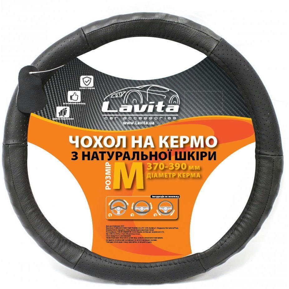 Чохол на кермо Lavita шкіряний Чорний з перфорацією 317 "M" (LA_26-B317-1-M)