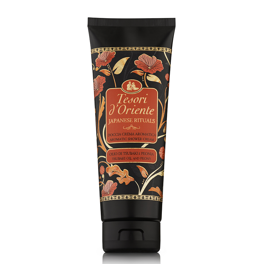 Крем для душа Japanese, обогащенный маслом цубаки и экстракт пиона, используемый в японских ритуалах красоты, насыщенный цветочным восточным ароматом.