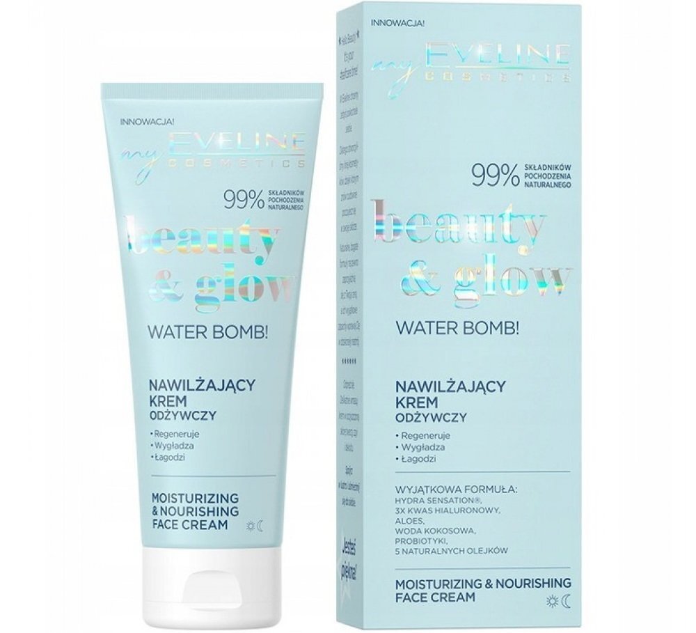 Уже после первого применения увлажняющий успокаивающий крем дневной/ночной WATER BOMB! серии BEAUTY&GLOW обеспечивает мгновенное и глубокое Уже после первого применения увлажняющий успокаивающий крем дневной/ночной WATER BOMB! серии BEAUTY&GLOW обеспечивает мгновенное и глубокое увлажнение, придает коже здоровый блеск и бархатистую гладкость.