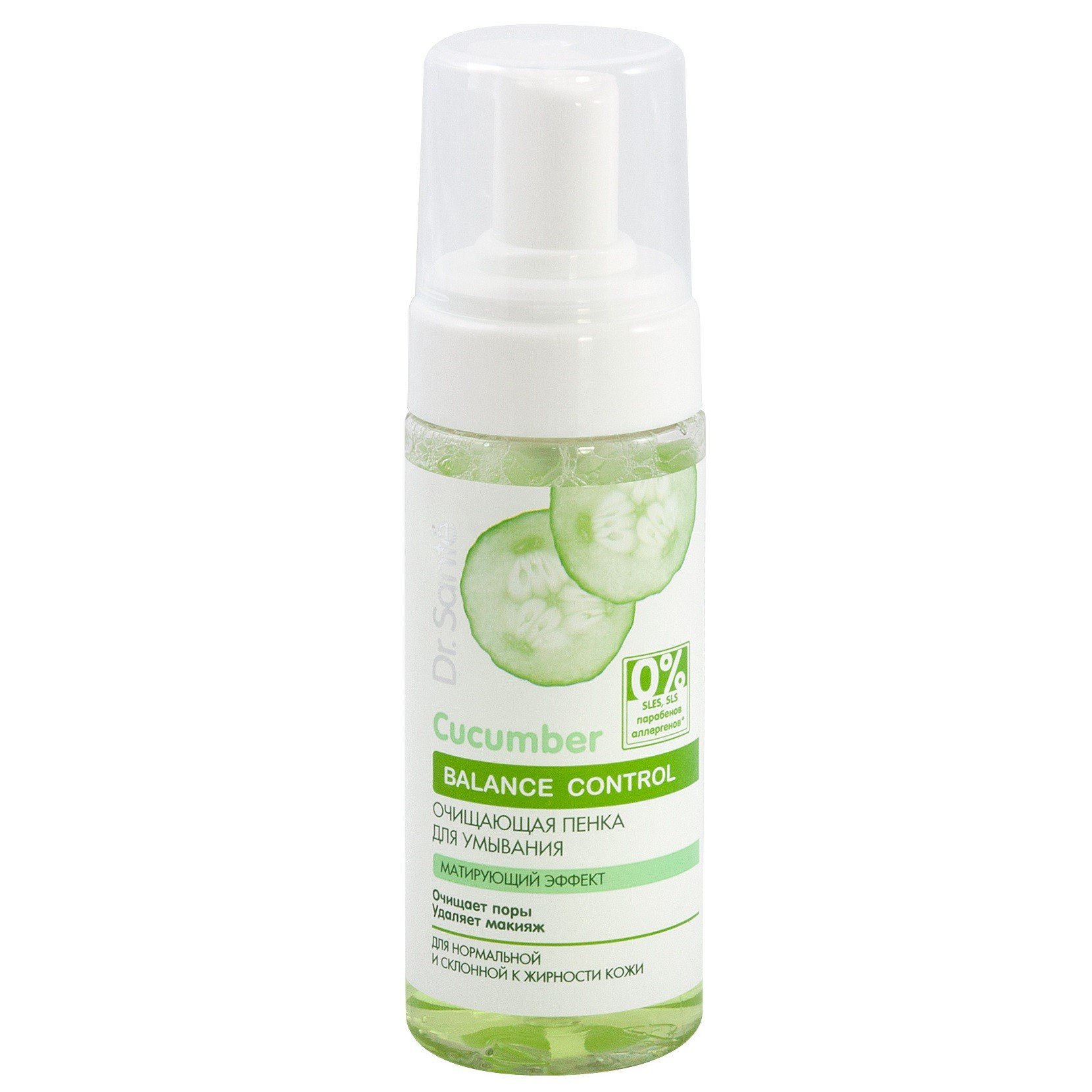 Пенка легко смывает косметику и очищает кожу от накопившихся в течение дня загрязнений. Экстракт огурца увлажняет и тонизирует. Экстракт карликовой пальмы регулирует работу сальных желез и делает кожу матовой. Экстракт белого чая успокаивает, возвращает ощущение свежести. Аллатоин предупреждает покраснения.
