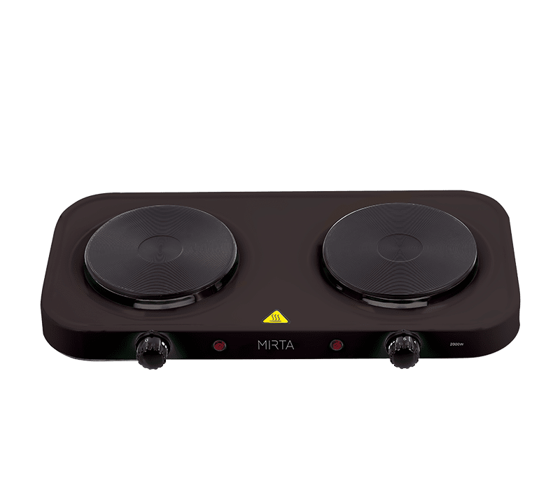 Электроплитка MIRTA HP-9920B (HP9920B) – это компактная двухконфорочная плитка с чугунными блинами равной мощности (1000 Вт+1000 Вт). Чугунные блины достаточно долго держат тепло после выключения устройства, что помогает сохранять электроэнергию.