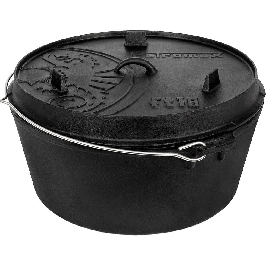 Качество чугуна PetromaxБлагодаря превосходным свойствам чугуна и особой структуре поверхности, тепло эффективно сохраняется и передается. Предварительно обработанная поверхность (выдержанная обработка) делает начальное запекание ненужным, и прочный котелок можно использовать сразу. На открытом воздухе используется на открытом огне или с древесными углями. Поднятый край крышки позволяет также класть уголь или древесный уголь в котелок. Таким образом, котелок нагревается со всех сторон и подходит, например, для выпекания хлеба.