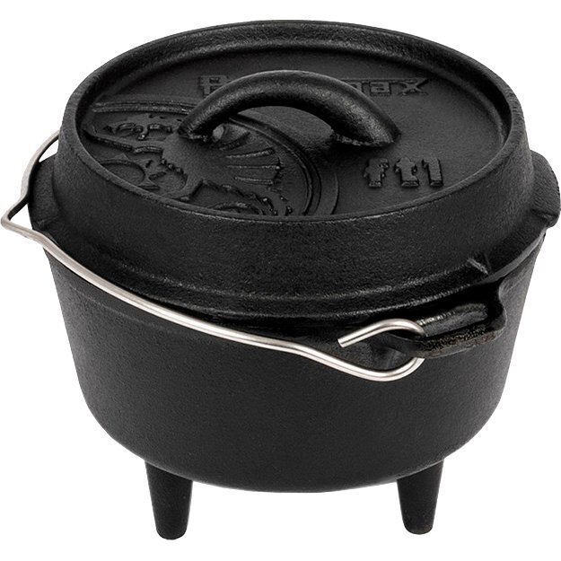 Качество чугуна PetromaxБлагодаря превосходным свойствам чугуна и особой структуре поверхности, тепло эффективно сохраняется и передается. Предварительно обработанная поверхность (выдержанная обработка) делает начальное запекание ненужным, и прочный котелок можно использовать сразу. На открытом воздухе используется на открытом огне или с древесными углями. Поднятый край крышки позволяет также класть уголь или древесный уголь в котелок. Таким образом, котелок нагревается со всех сторон и подходит, например, для выпекания хлеба.