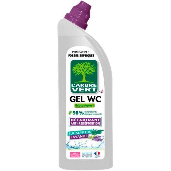 Гель для чистки унитазов L'Arbre Vert с запахом лаванды и эвкалипта специально разработан для регулярного ухода за унитазами и писсуарами. Его натуральная формула против повторного отложения предотвращает и устраняет накипь и грязь. Аромат лаванды и эвкалипта оставляет нежный аромат чистоты. Он одобрен аллергологами Ассоциации клинических исследований аллергологии и астмы (ARCAA).