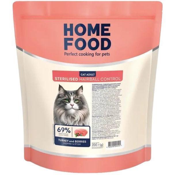 Сухий корм HOME FOOD Індичка та ягоди для виведення шерсті зі шлунку 200г (4820290090101)