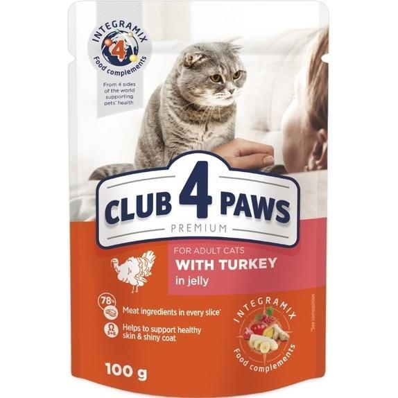 Вологий корм для дорослих котів Club 4 Paws Premium з індичкою в желе 100г (B5611311)