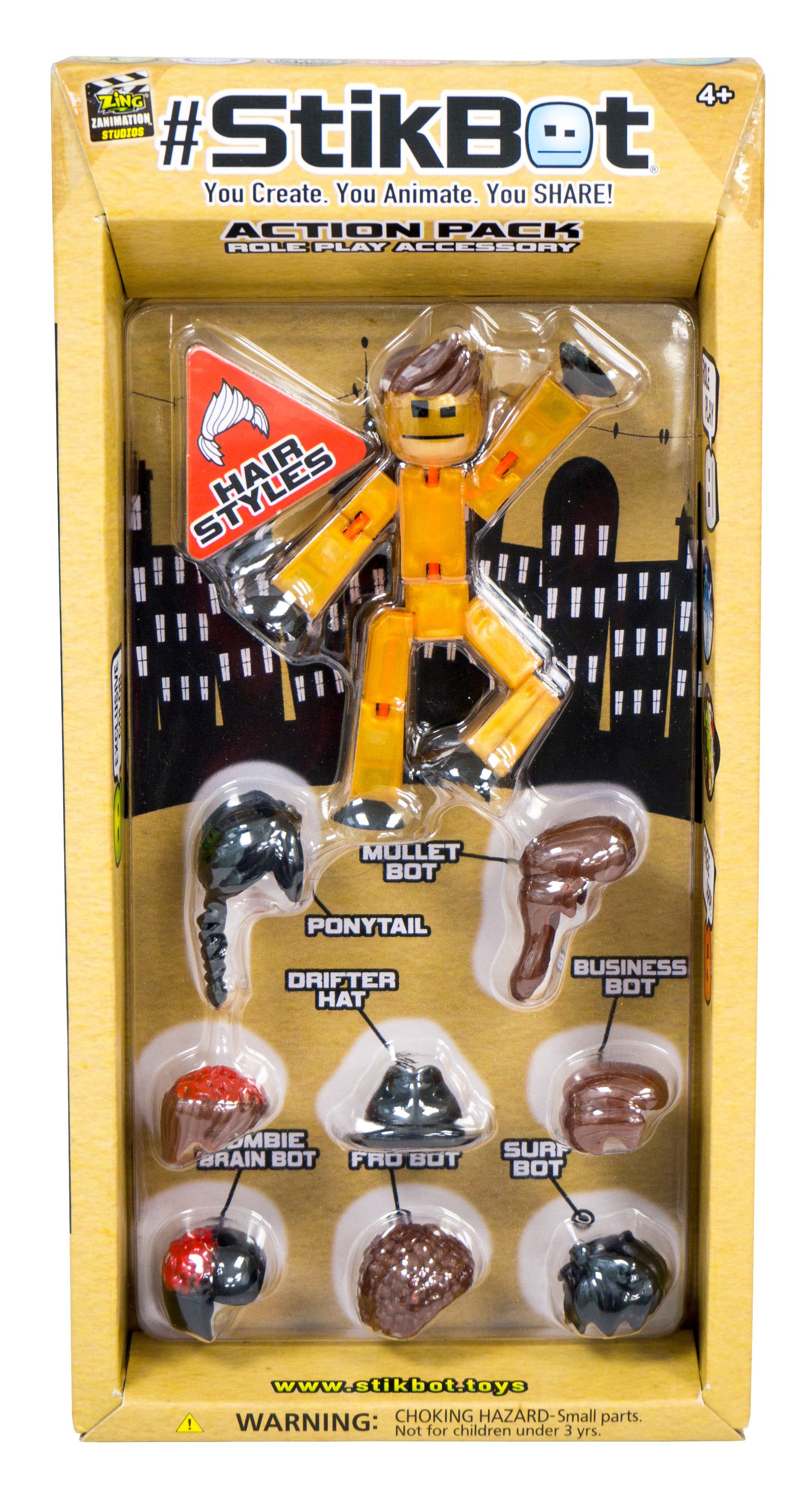 В набор входит фигурка Stikbot и 9 различных париков. STIKBOT хочет двигаться в направлении твоих идей!