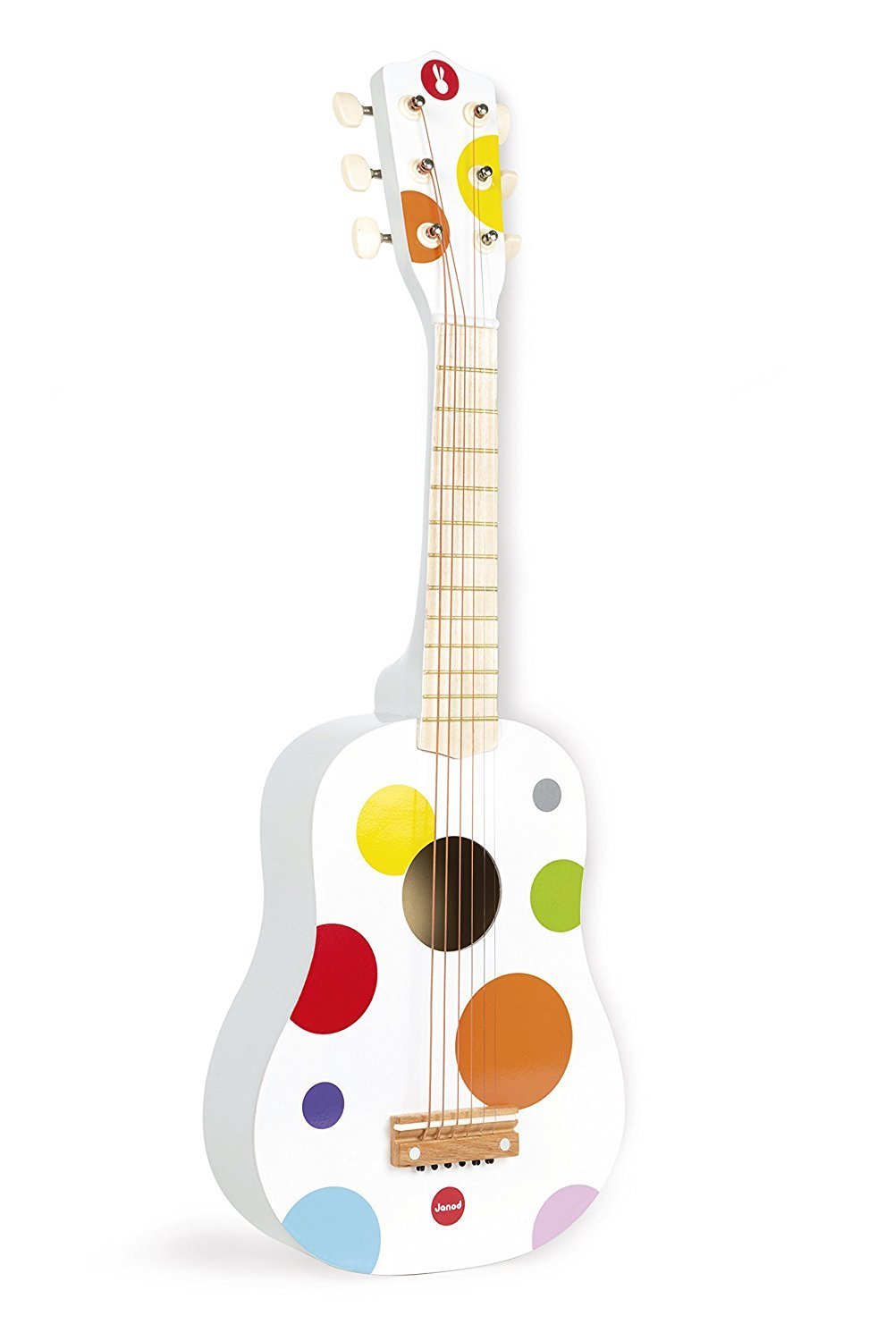 Гитара французского производителя игрушек Janod относится к серии «Конфетти». Деревянный инструмент имеет шесть струн. Гитара белая, с цветным узором в стиле, напоминающем россыпь цветного конфетти. Конфетти просыпается всеми чувствами и представляет молодых музыкантов радость музыкальной импровизации. Гитара размером 64х22х6 см. Игрушка получила признание и получила награду Оппенгейма в США. Для детей от 3 лет.