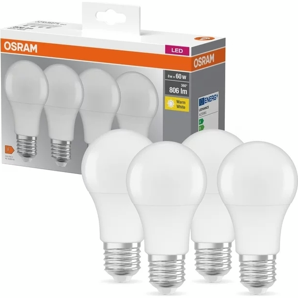 Набір ламп 4шт OSRAM LED E27 8.5Вт 2700К 806Лм A60 (4058075819450)