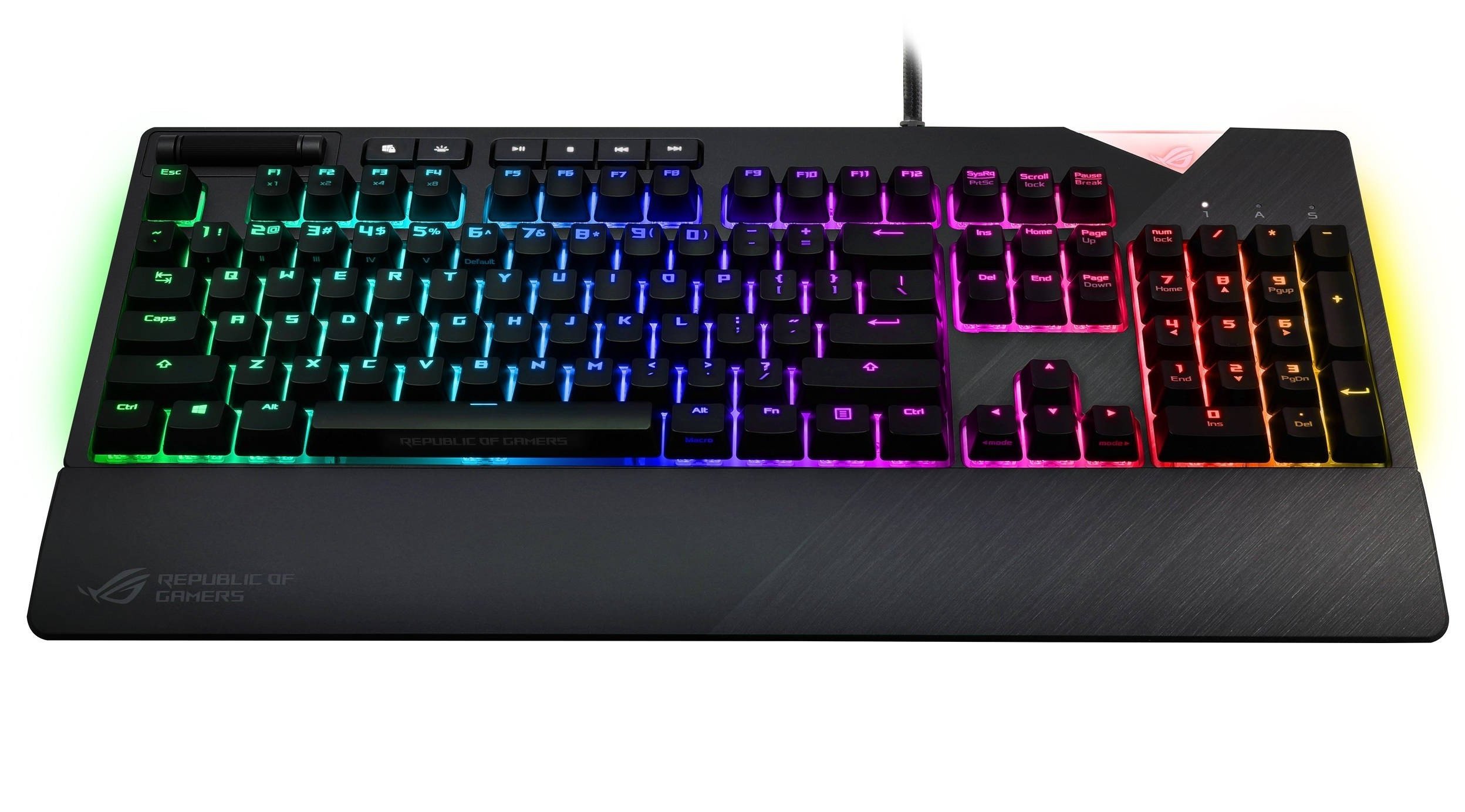 ROG Strix Flare RGB – механическая игровая клавиатура с переключателями Cherry MX, персонализируемой пластиной с подсветкой и отдельными мультимедийными клавишами