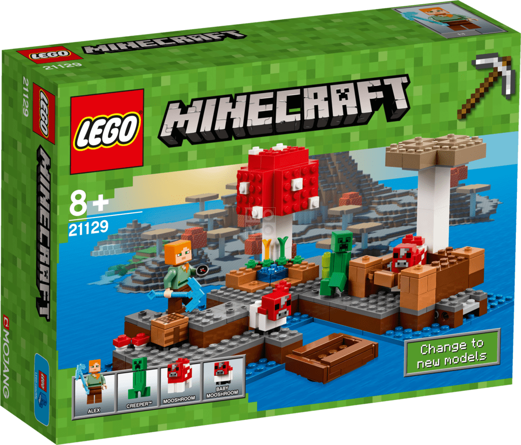 Девушка - исследователь Алекс, вооруженная киркой и решимостью, осматривает таинственный каменистый грибной остров, над которым гордо раскинул свою красно-пятнистую шляпку гигантский мухомор. Несмотря на отсутствие зелени и полезных ресурсов под открытым небом, тишина обманчива, ведь за Алекс следят зеленый крипер и две грибных коровы, которые ужасно недовольны вторжением человека в их грибные владения. Монстры полны решимости защитить мухомор и свое "сокровище" - большой белый гриб, который они выращивают в деревянном загончике. Традиционно, набор является модульным и может легко перестраиваться в новый ландшафт, а стена загона может "взрываться" нажатием на потайную деталь.