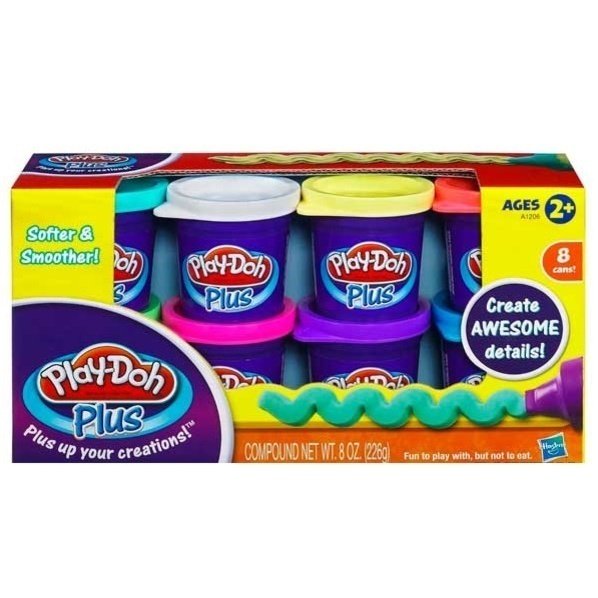 При помощи нового пластилина Play-Doh PLUS (в синей баночке) Вы сможете слепить даже самые маленькие детали для Ваших шедевров! Тортики с розочками, мороженое и пирожные со всевозможными декоративными элементами, и это еще не предел. Его структура более мягкая и приятная на ощупь. Имеет сладкий запах, но соленый на вкус!