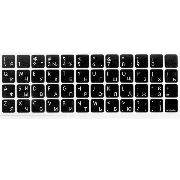 Русские наклейки на клавиатуру MacBook, MacBook Pro, MacBook Air, iMac на чёрной основе