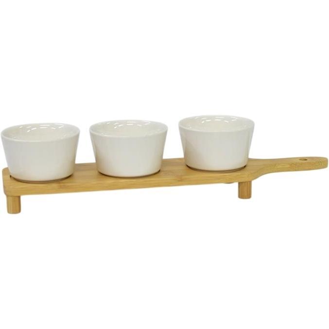 Набор соусников Ardesto серии Midori - изящное и практичное решение для сервировки едва ли не любого стиля. В наборе есть три соусника белого цвета объемом 150 мл и подставка, изготовленная из бамбука. Изделия гармонично сочетаются между собой, создавая привлекательный вид и добавляя сервировке особого шарма. Посуда изготовлена из качественного фарфора, прочного и устойчивого к образованию сколов и трещин, что обуславливает длительный срок службы. Набор пригодится не только для ежедневных трапез, но и для особых событий.