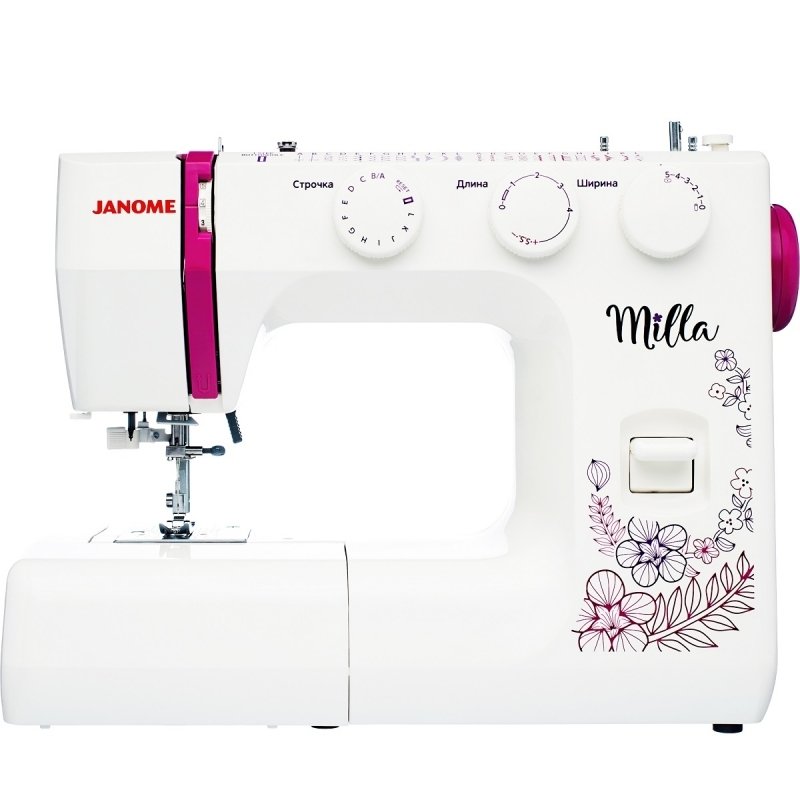 Швейная машина Janome Milla является электромеханической швейной машинкой японского бренда. Качественно выполняет 25 видов программ, производитель снабдил ее металлическим челночным механизмом вертикального расположения.