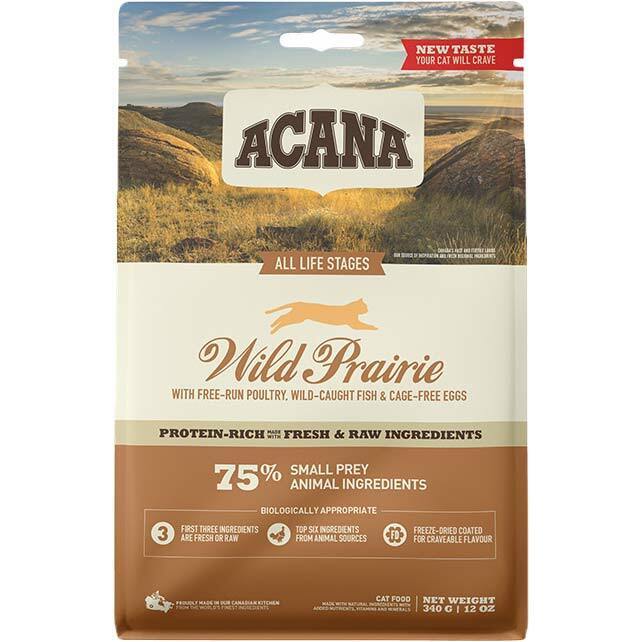Acana Wild Prairie Cat. Корм для кошек всех пород и всех стадий жизни. Котам необходимы рационы с богатым содержанием мясных протеинов. Вдохновляясь нашими обширными прериями и кристальными озерами, рецептура Acana Wild Prairie переполнена мясными ингредиентами высокого качества: мясом цыплят и индейки, выращенных на свободном выгуле, гнездовыми яйцами и пресноводной рыбой, выловленной в дикой природе. Все ингредиенты представлены в соотношении WholePrey, включая мясо, органы, хрящи и съедобные кости, чтобы ваш любимый питомец получал все необходимое для здоровья, отличной физической формы и благополучия.