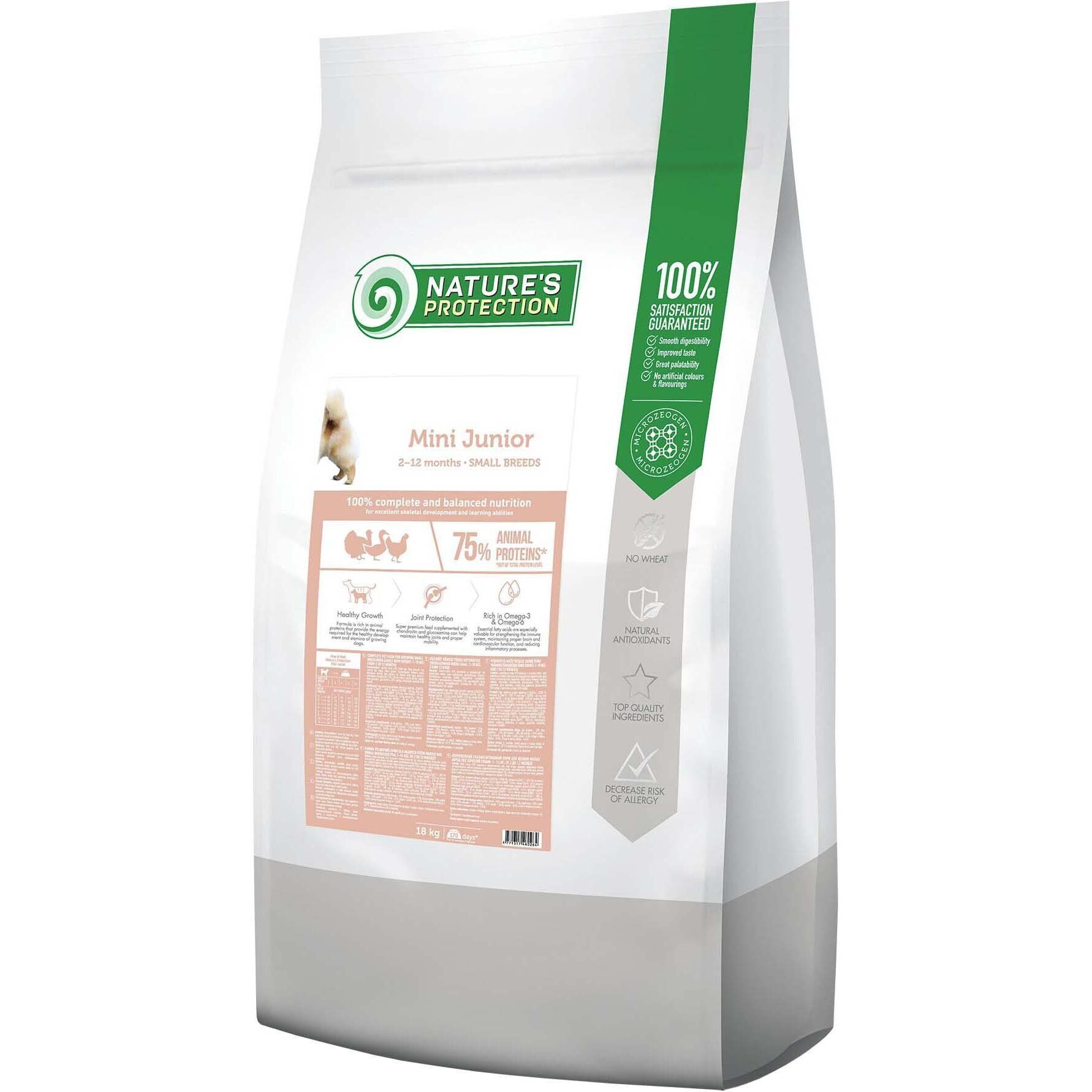 Nature's Protection- сбалансированные полнорационные сухие корма суперпремиум класса, созданные для удовлетворения разнообразных потребностей молодых и зрелых собак. Особо любимые собаками легкоусвояемые корма не содержат генетически модифицированных продуктов и искусственных красителей. В составе сухого корма - ингредиенты высочайшего качества. Полнорационный сухой корм позволяет полностью удовлетворить потребности организма молодой собаки в питательных веществах, легко усваивается и имеет приятный для животных вкус.