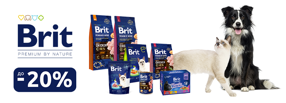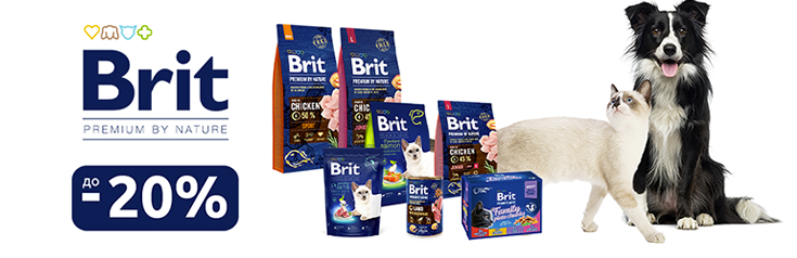 Знижка до 20% на корм для котів та собак ТМ Brit Premium