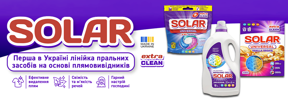 Знижки до -25% на побутову хімію та інвентар ТМ Solar