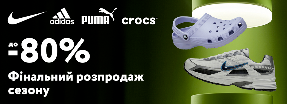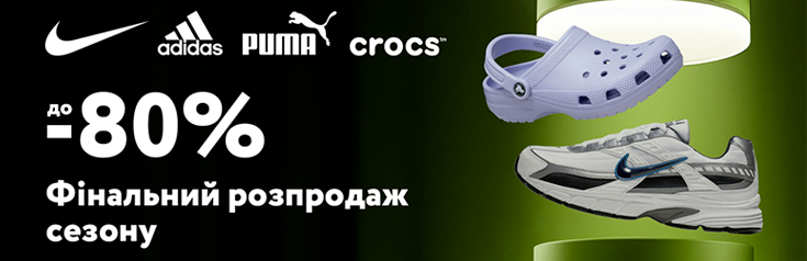 Фінальний розпродаж сезону. Знижки до -80% на взуття Adidas, Nike, Puma, Crocs та інших