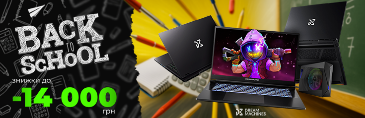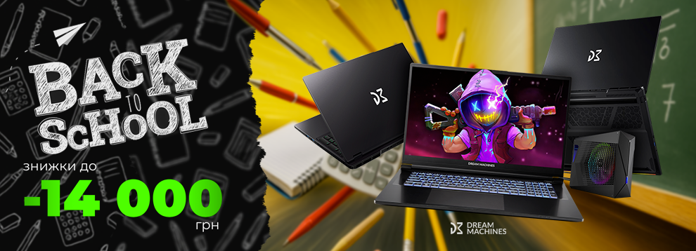 - Готуйся до нового навчального року з потужними ноутбуками DREAM MACHINES! Лови знижки до 14 000 грн на обрані моделі та отримай максимум продуктивності для навчання, роботи та розваг *Акція діє при покупці готівкою або кредитною карткою. Ціни вказані у гривнях, кількість товару обмежена. Ціни та умови пропозиції можуть бути змінені протягом дії акції. Зображення товару на фото може відрізнятися від фактичного. Доступно в кредит, розстрочку чи оплату частинами. Умови кредитування визначаються фінансовою установою індивідуально кожному клієнту. Фінансова установа залишає за собою право відмовити у видачі кредиту без пояснення причин. Акція підсумовується з іншими пропозиціями. Акційна пропозиція дійсна на території України за винятком тимчасово окупованих територій та територій населених пунктів, що розташовані в зоні бойових дій та на лінії зіткнення.