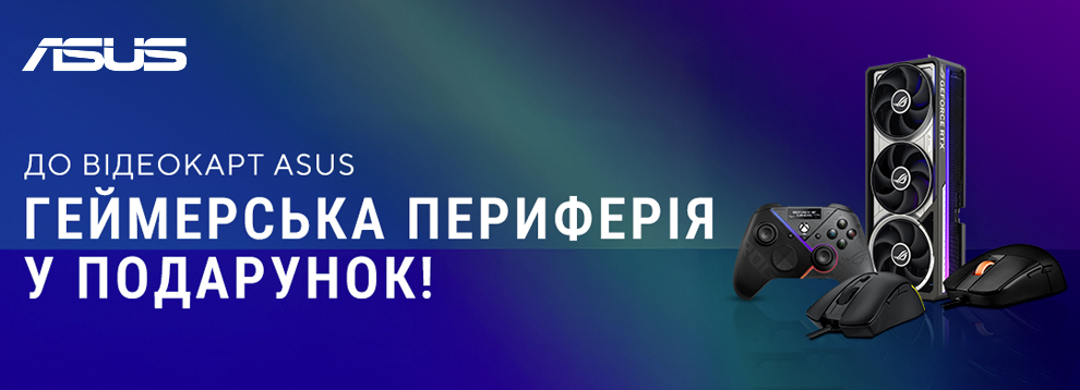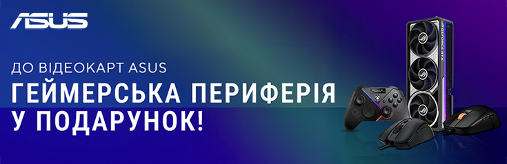 - Купуй нові акційні відеокарти ASUS та отримай подарунок *Акція діє при покупці за готівку або кредитною карткою. Ціни вказані у гривнях, кількість товару обмежена. Ціни та умови пропозиції можуть бути змінені протягом дії акції. Зображення товару на фото може відрізнятися від фактичного. Доступно в кредит, розстрочку чи оплату частинами. Акція підсумовується з іншими пропозиціями.
