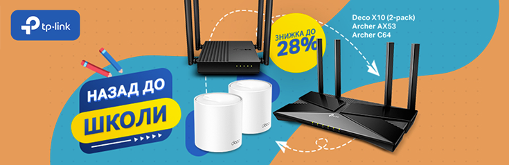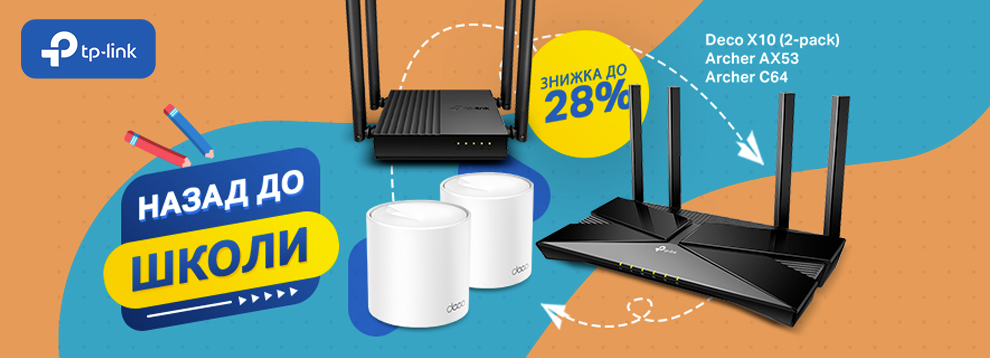 - Купуй нові акційні товари TP-Link та отримай знижку до 13% *Акція діє при покупці за готівку або кредитною карткою. Ціни вказані у гривнях, кількість товару обмежена. Ціни та умови пропозиції можуть бути змінені протягом дії акції. Зображення товару на фото може відрізнятися від фактичного. Доступно в кредит, розстрочку чи оплату частинами. Акція підсумовується з іншими пропозиціями.