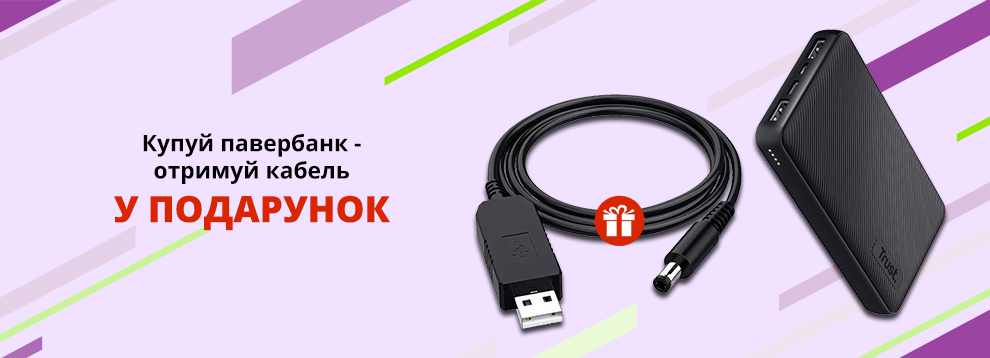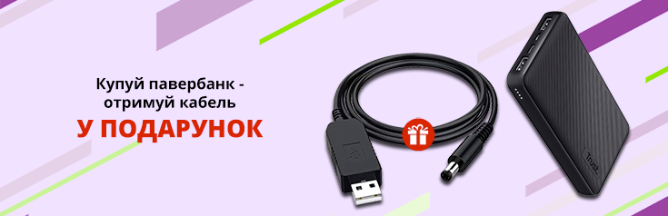 - Купуй павербанк та отримуй Кабель живлення 2Е USB-A - DC 5,5х2,5 мм 12V/1A (2E-CCAD12-BK) або Кабель живлення 2Е USB-A - DC 5,5х2,5 мм 9V/1A (2E-CCAD9-BK) на вибір *Акція діє при покупці готівкою або кредитною карткою. Ціни вказані у гривнях, кількість товару обмежена. Ціни та умови пропозиції можуть бути змінені протягом дії акції. Зображення товару на фото може відрізнятися від фактичного. Доступно в кредит, розстрочку чи оплату частинами. Акція підсумовується з іншими пропозиціями. Акційна пропозиція дійсна за винятком тимчасово окупованих територій та територій населених пунктів, що розташовані в зоні бойових дій та на лінії зіткнення. Повернення можливе лише комплектом (основний товар + подарунок). Під подарунком мається на увазі можливість придбати подарунок (Кабель живлення 2Е USB-A - DC 5,5х2,5 мм 12V/1A (2E-CCAD12-BK) або Кабель живлення 2Е USB-A - DC 5,5х2,5 мм 9V/1A (2E-CCAD9-BK)) за 1 грн.