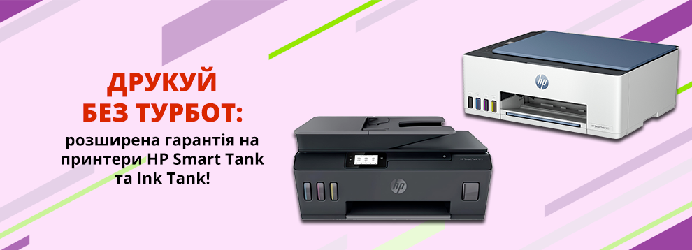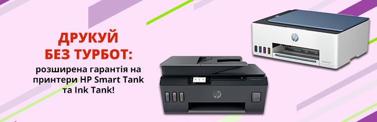 Друкуй без турбот: розширена гарантія на принтери HP Smart Tank та Ink Tank!